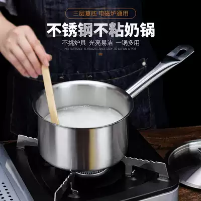 Stainless steel thick bottom milk pot non-stick pot single handle juice pot baking cooking pot baby non-staple food pot electromagnetic road Universal
