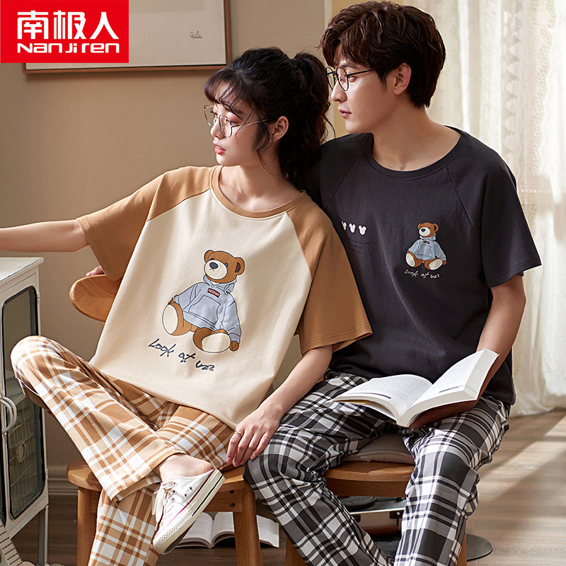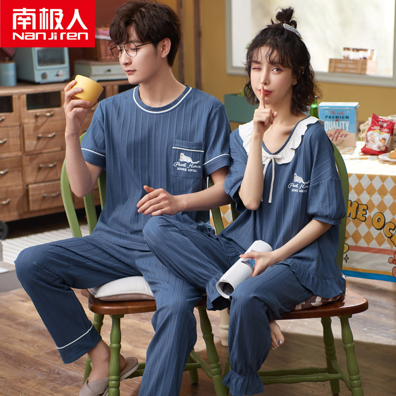 South Pole lovers Sleepwear Men's summer slim short sleeves Long pants Home Dress Lady Spring Summer Pure Cotton Two-piece Suit