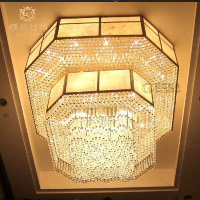 Chinese style ceiling crystal lamp hotel restaurant large creative villa club living room box lamp engineering lamp customization