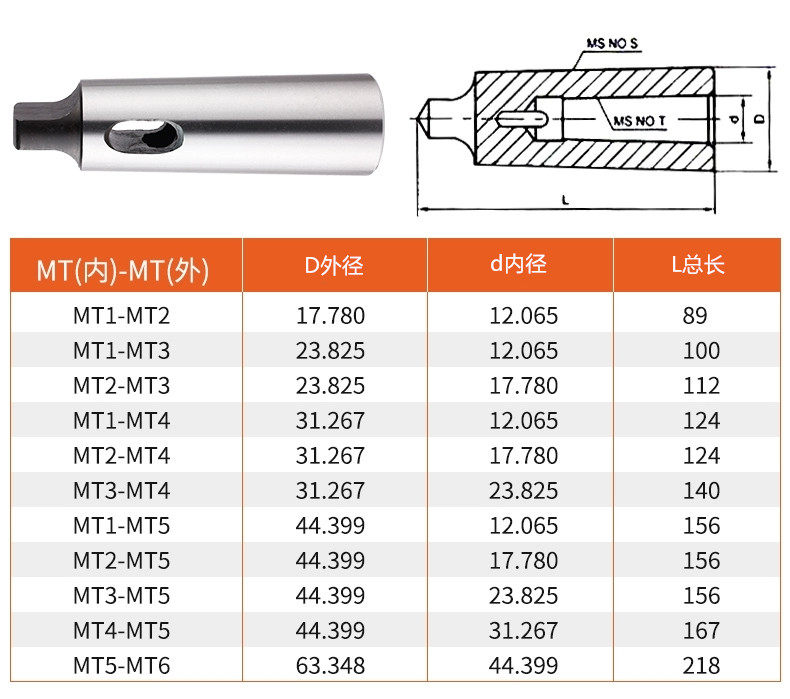 Mohs Change Diameter Sleeve Cone Shank Drill Sleeve Flat Tail Cone Drill All Mill High Precision Drill Pushers 1 Number -2-3-4-6