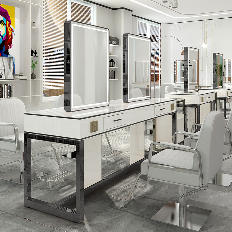 Hair Salon Special Hairdresse Shop Mirror Bench Marble Countertop Mirror Table Minima Beauty Beauty Hair Perching Single-sided haircut mirror