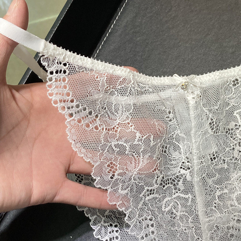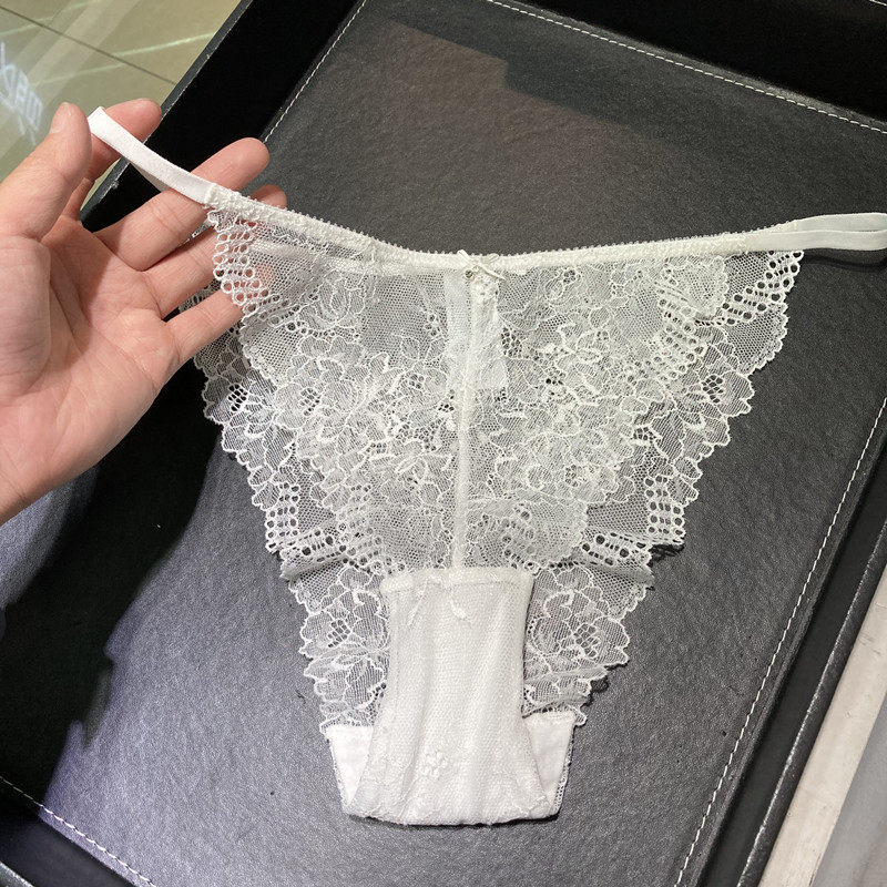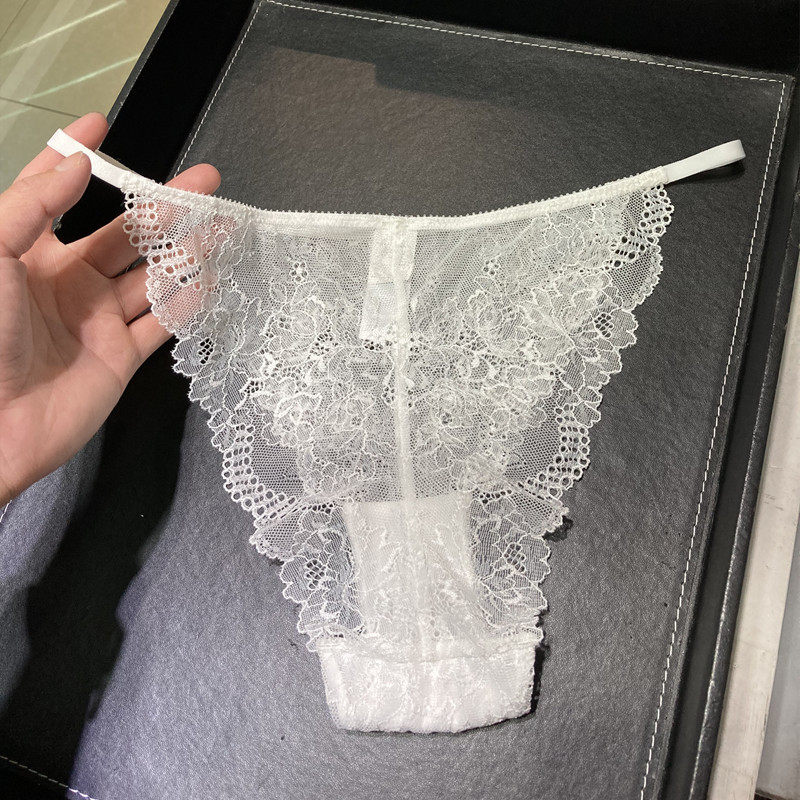 European and American Sexy transparent lace bikini women's underwear low waist fire horseradish T-pants white black T pants ultra-thin