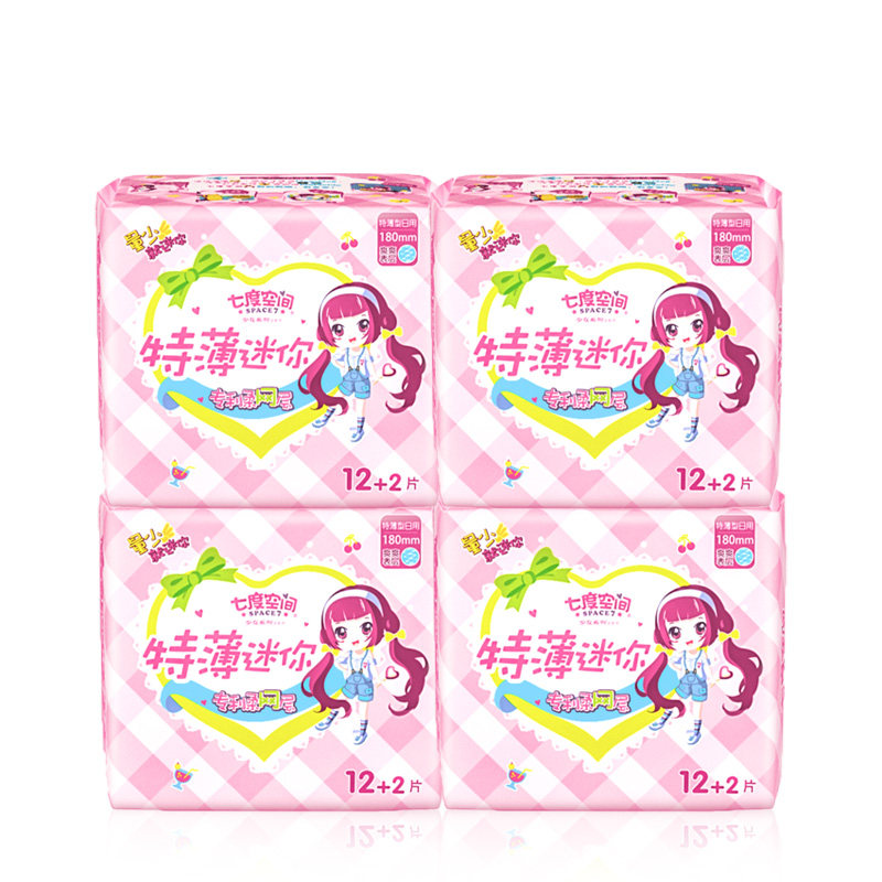 Seven-degree space sanitary cotton female ultra-thin mini dry mesh surface 180mm less daily little number Aunt Aunt Towel Whole box