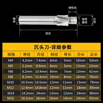 Full grinding straight shank countersunk milling cutter countersunk drilling flat bottom countersink pump cutter thimble thimble thrustle
