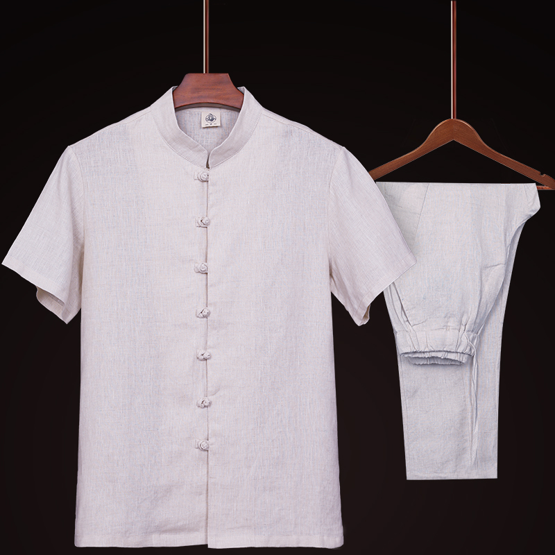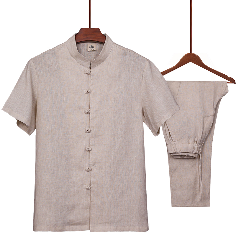 Tang Loaded Short Sleeve Pure Hemp Cloth Shirt China Wind Summer Suit Middle-aged men Men Linen Half Sleeve Dad Clothes