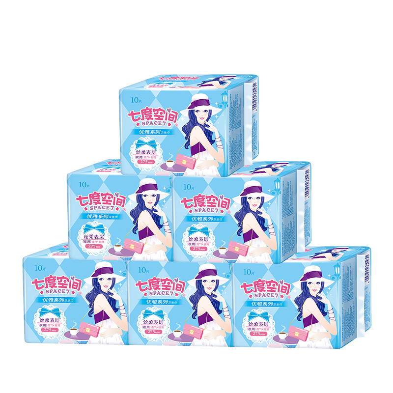 Seven Degrees Space Sanitary Cotton Female Elegant Series 275mm Night with Pure Cotton Aunt Towel Full Box Officer Net Special Price