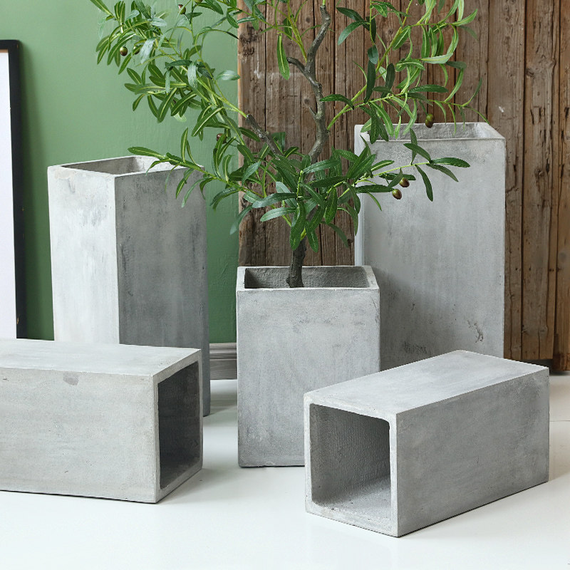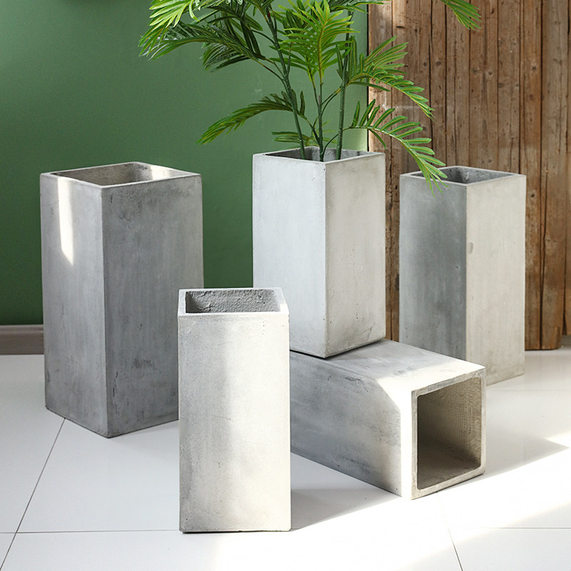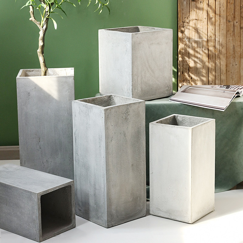 Nordic minimalist creative cement flower pot rectangular large floor-to-ceiling pot modern living room indoor green plant courtyard flower pot