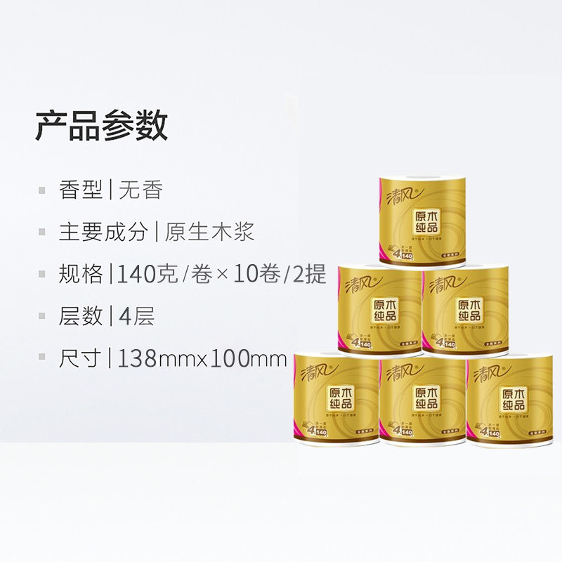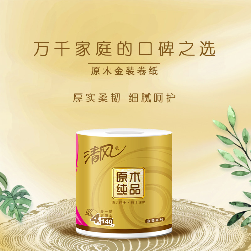 Qingfeng roll paper log gold 4 layers 140g 20 roll roll household toilet paper towel family pack roll paper