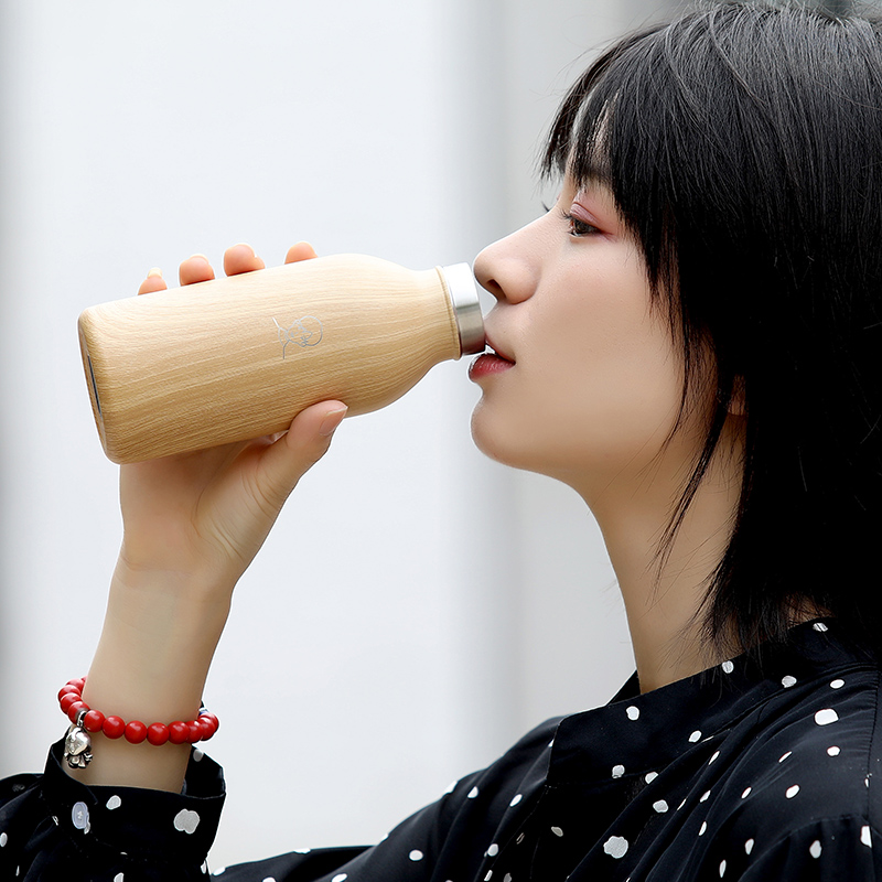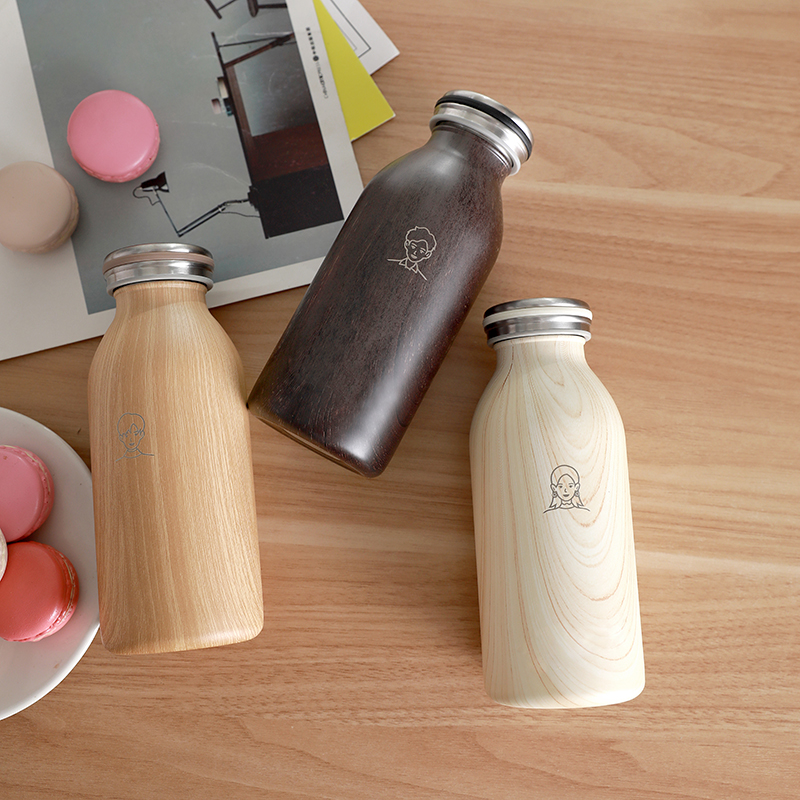 mosh thermos cup Japanese light portable little girl heart ins male and female students simple wood grain stainless steel water Cup