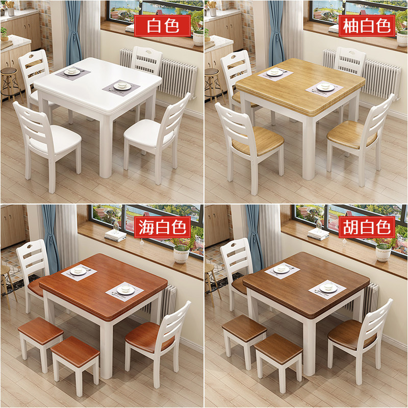 All solid wood dining table home dining table modern minimalist dining table and chair combination small apartment 4 people square solid wood dining table