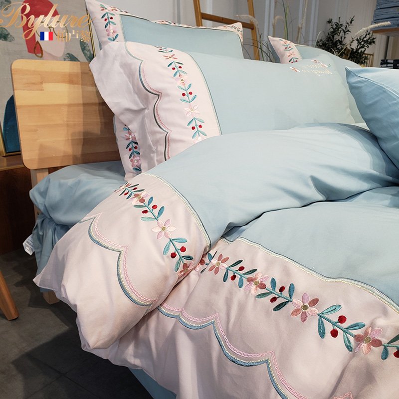 Bylure Fields Garden Wind Four Pieces All Cotton Pure Cotton 80 Long Suede Cotton Summer Little Fresh Bed Linen Bed Supplies
