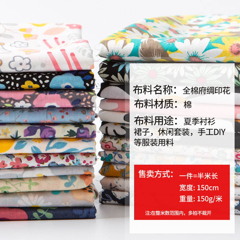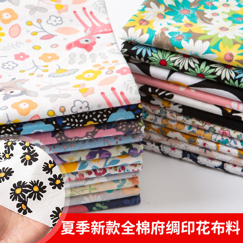 Poplin cotton fabric cotton small floral pastoral summer thin jumpsuit dress dress baby pajamas fabric