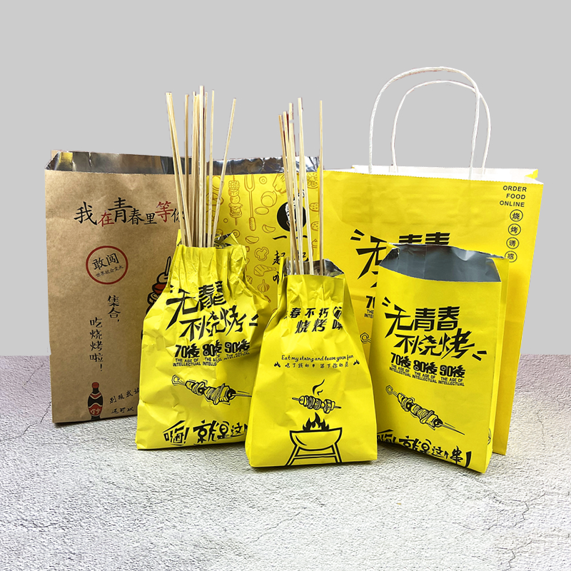Barbecue Packaging Bag Insulated Tin Paper Bag Disposable Aluminum Foil Anti-Oil Bag Roll String Of Fried Strings Takeaway Bags Hand Bags