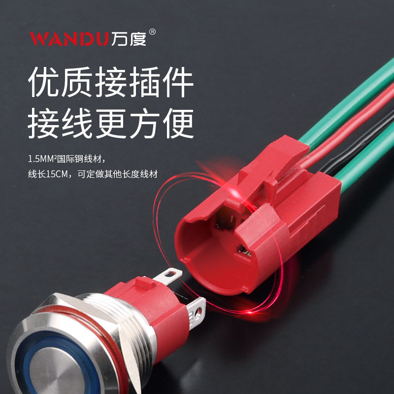 With lamp connector 4 line 3V-6V red light-Self-lock type-Flat ring ring Luminous 3V-6V green light-Self-lock type-Flat ring ring Luminous 3V-6V blue light