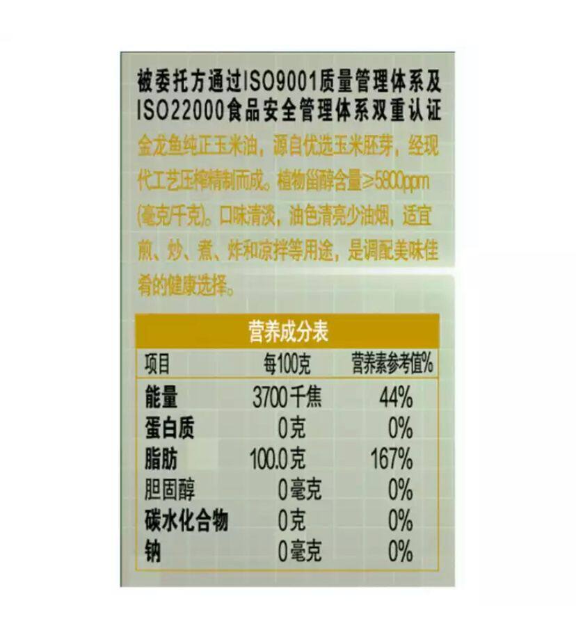 Golden Dragon Fish Non - GM Press Level 1 Pure Corn Oil 4L*2 barrels packed