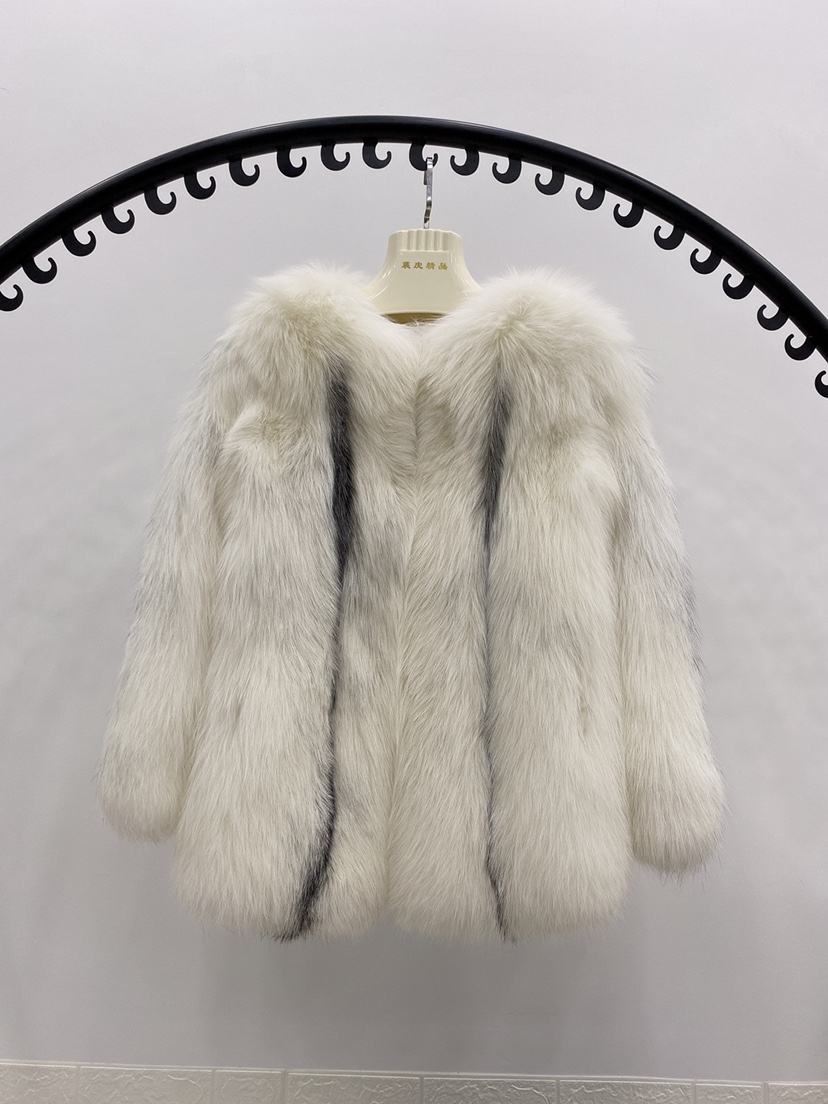 Imported long round-collar fur coat female Haining silver fox small white fox blue fox