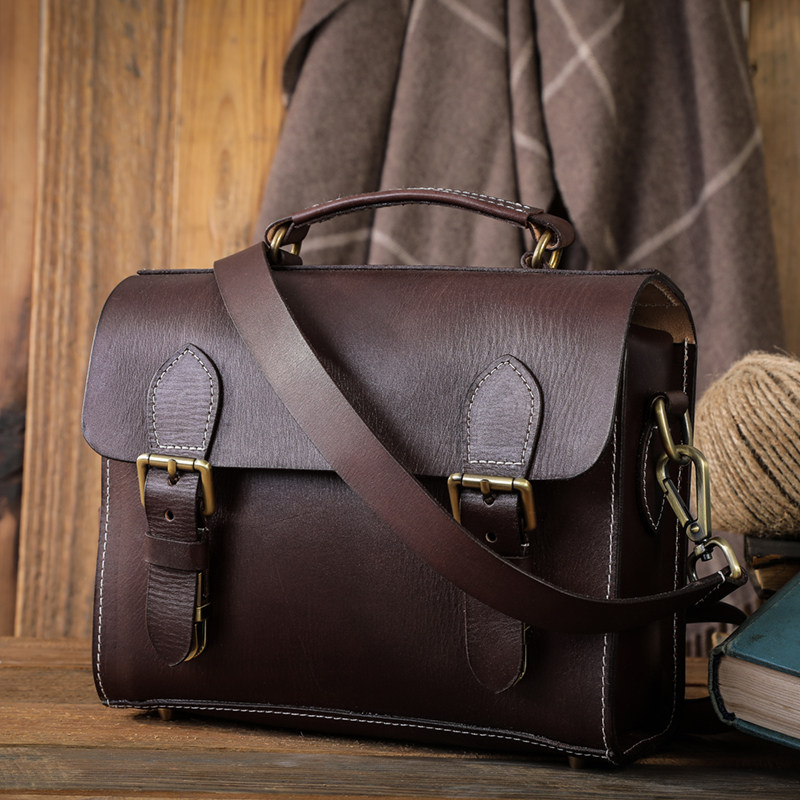 Handmade Planted Tannic Leather Cambridge Bag Lacquered Aramica Antique Genuine Leather Head Layer Leather Bag Handbag handbag