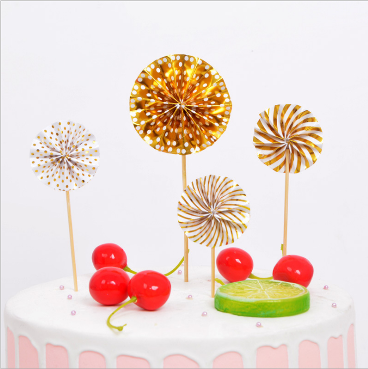 Ins Wind Gold Silver Pink Folding Fan Flower Paper Fan Peanut Day Cake Insert Plug-in Party Cake Decoration