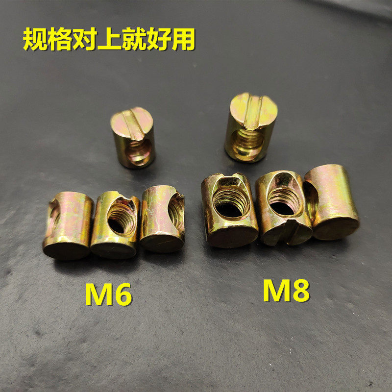 One-word hammer female M6 nut furniture cabinet screw female solid wood bed hammer flower frame chair connector M8 nut accessories