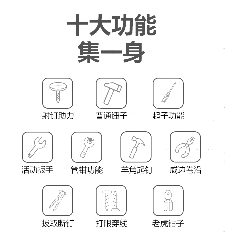 Universal Hammer Manual Nailing Tool Nail Puller Pliers Tube Pliers Wrench Multifunction Integrated Hammer Multiple All-in-one Tool