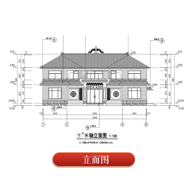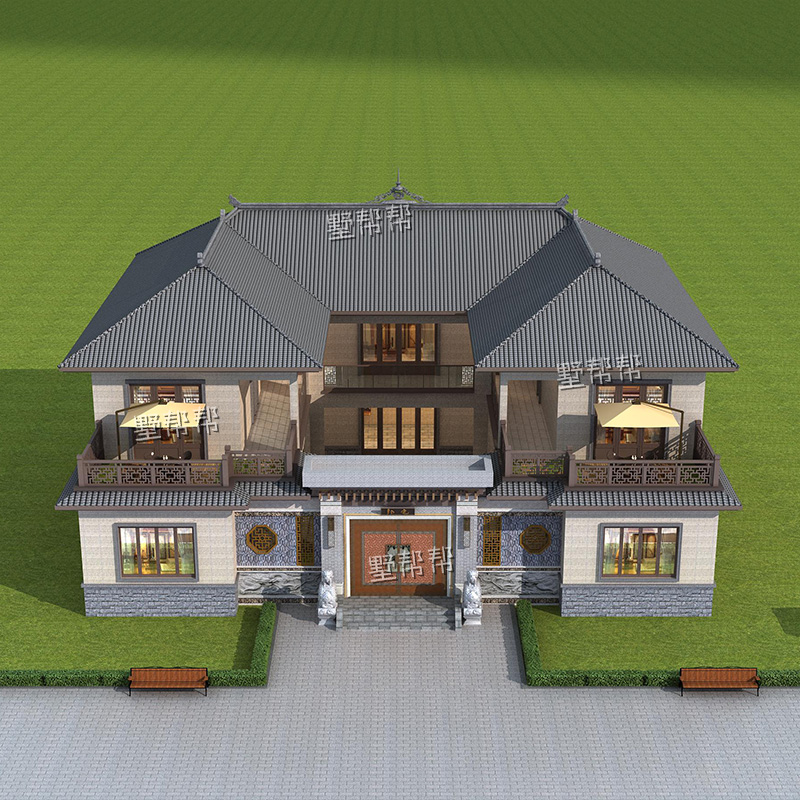 Chinese-style courtyard three rural self-built house villa design full set of construction drawings rural cover JFS20010 villa gang