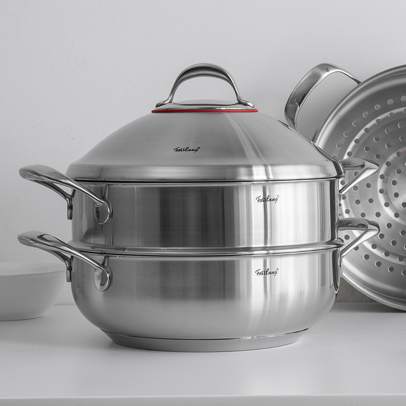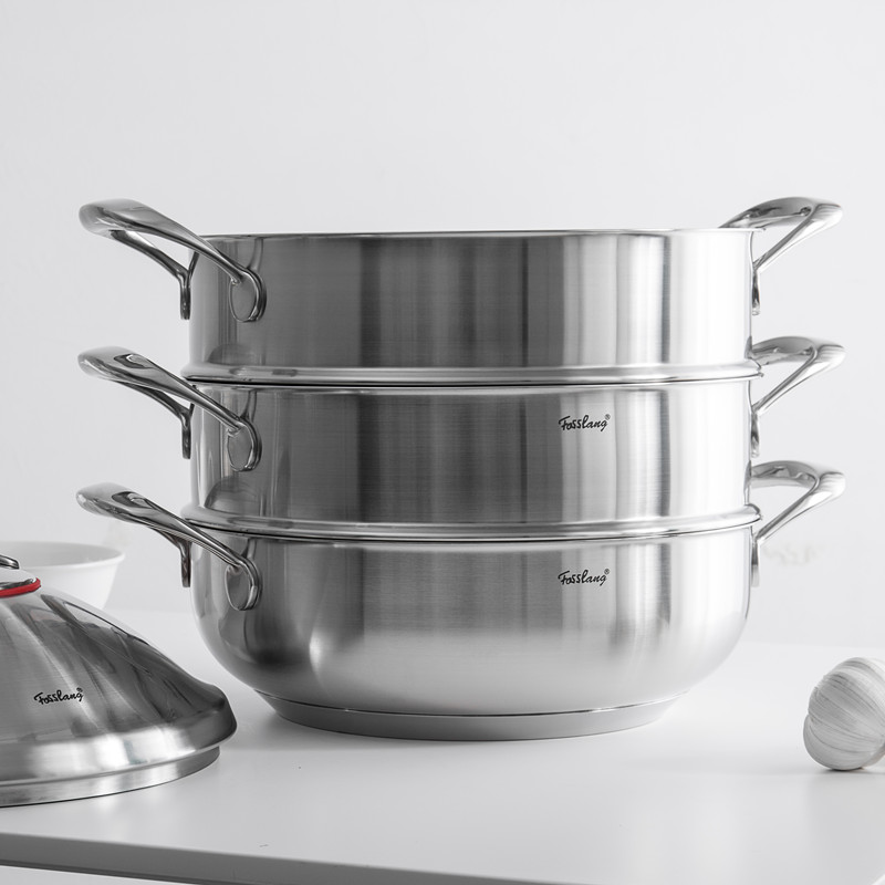 Filisee steamed pan imported 304 stainless steel steamer Home Three layers steamed buns Home Large-capacity pot 30cm