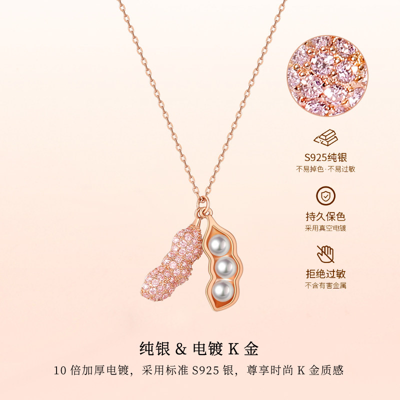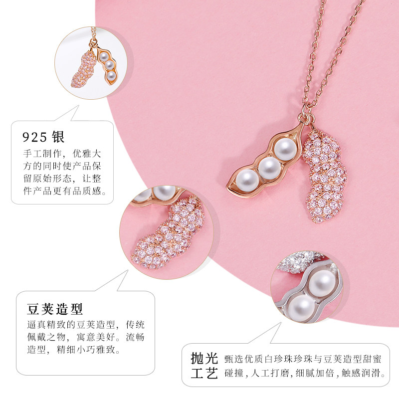 Peanut pearl necklace girls sterling silver collarbone chain light luxury niche design fashion all-match jewelry birthday gift