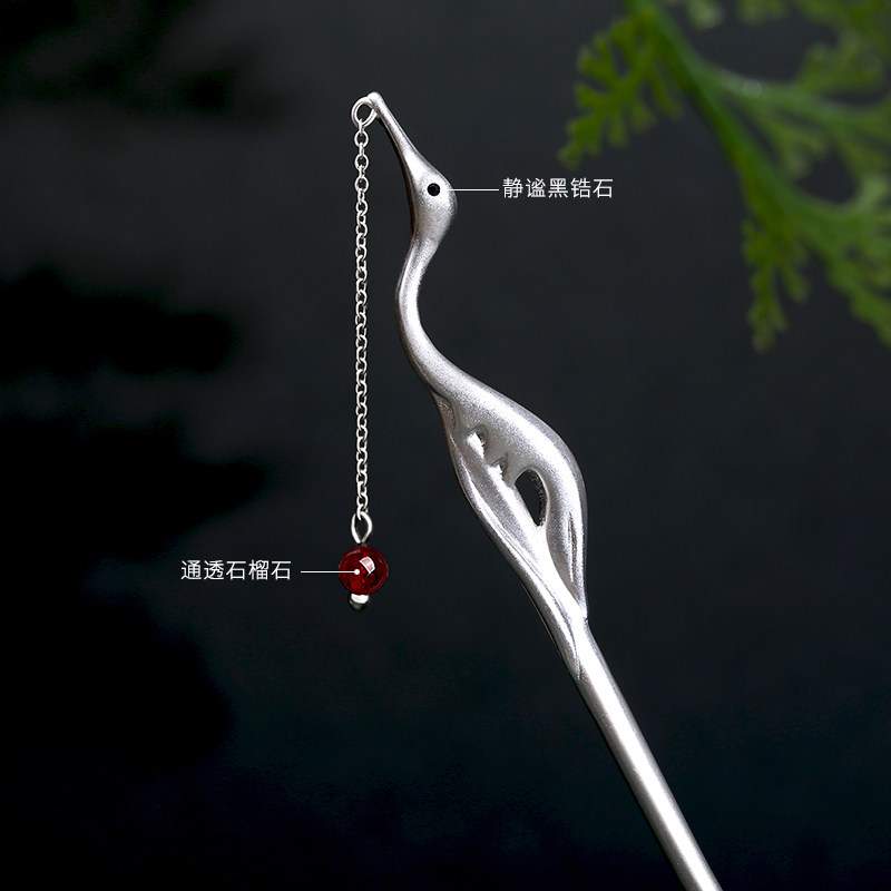 Crane silver hairpin (small send certificate storage bag) Crane silver hairpin upgrade version(large recommend this send certificate storage bag) Crane silver hairpin small