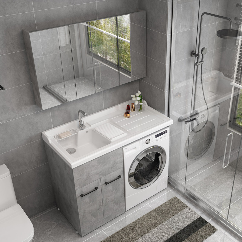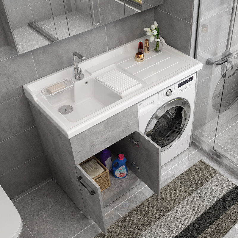 With washing machine cabinet with matching surface basin with tap with tap