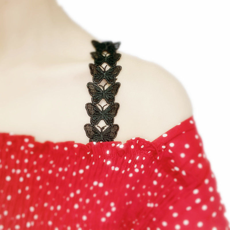 New lace butterfly flower shoulder strap hollowed-out fine shoulder strap can be exposed with beautiful shoulder and beauty back invisible belt mesh red underwear shoulder strap
