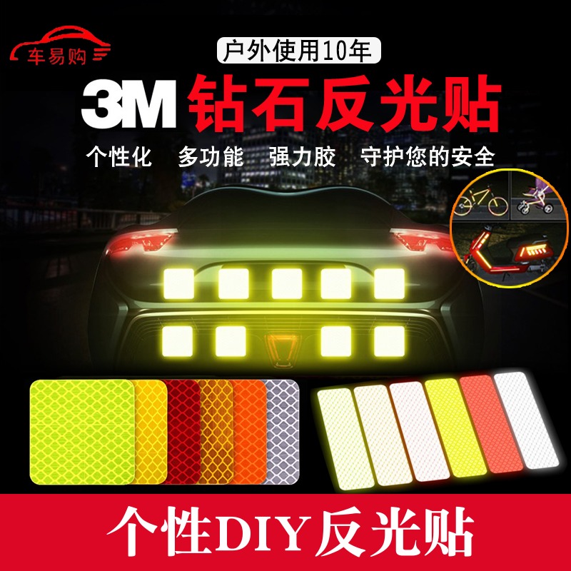 3M Reflective Patch Strips Car Locomotive Electric Bike warning logo Decorative Safety Helmet Sticker Car Sticknight