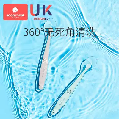 Kechao baby silicone soft spoon baby tableware newborn feeding puree to eat warm spoon discolored non-food bowl