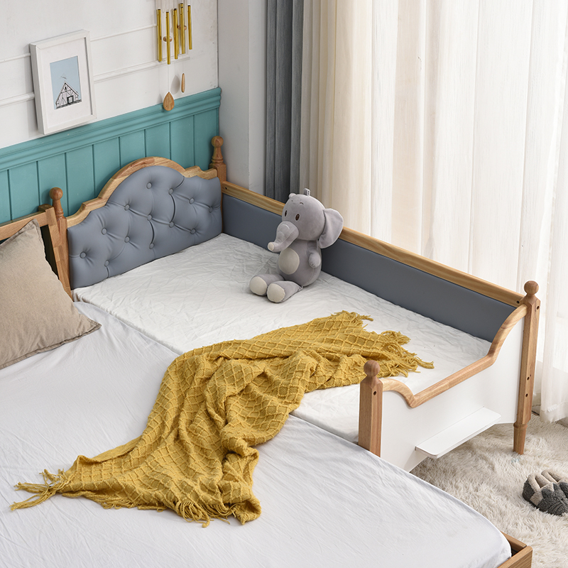 Children's bed with guardrail solid wood princess bed baby single bed widened Yanbian baby crib splicing big bed soft bag