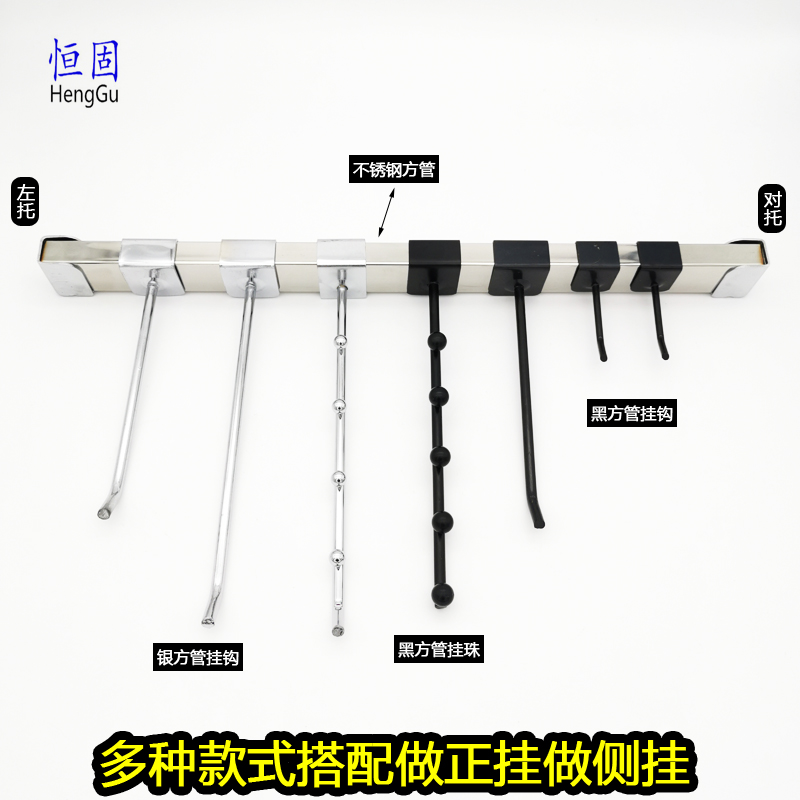 Wall cabinet square tube-to-shelf base D9 silver black cross-beam straight display cabinet on both sides of the left and right tube shelf hooks