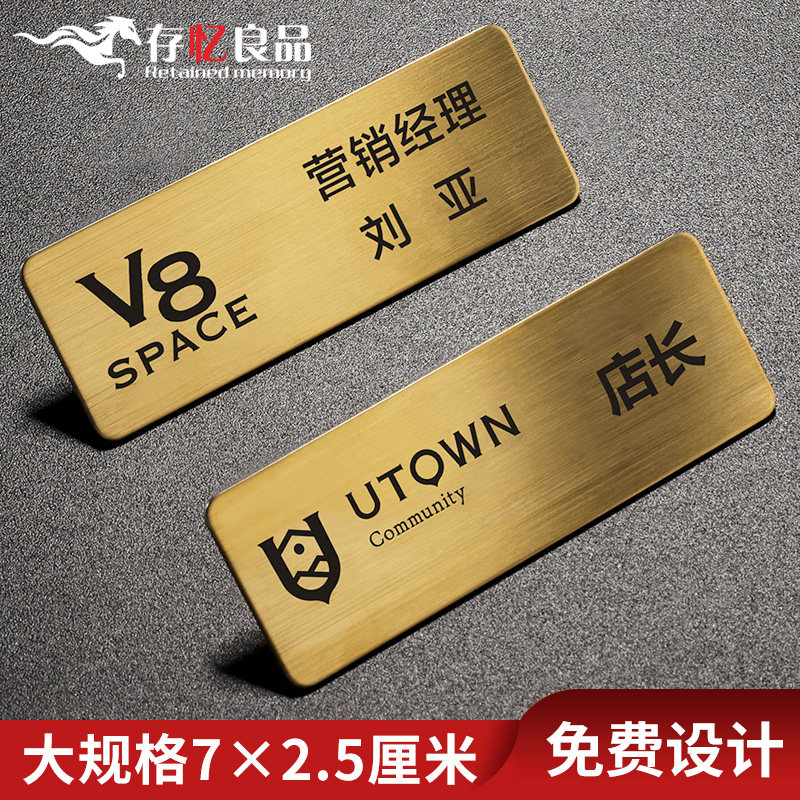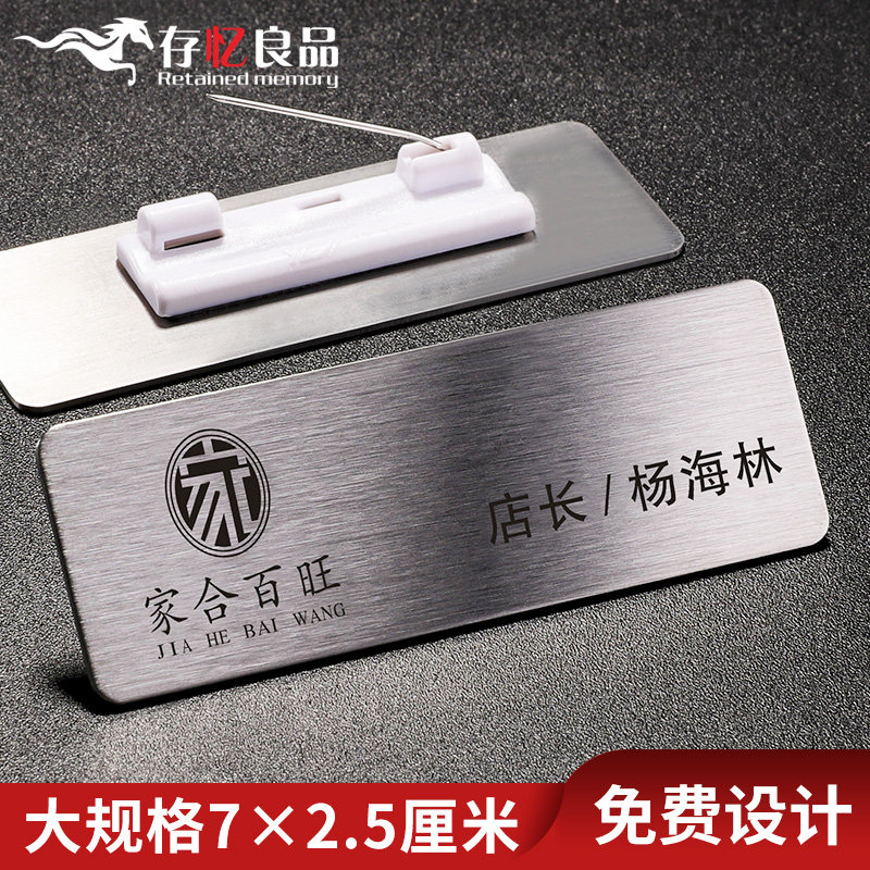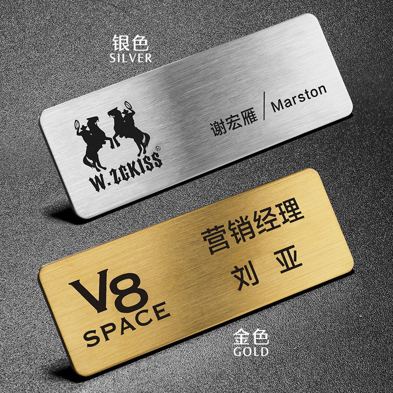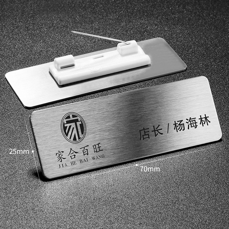 High-end chest cards set for metal working cards Custom Pins Drawing Stainless Steel Employees Work Signs Magnet Work Cards