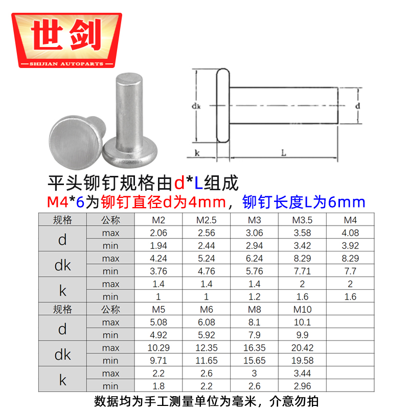 5M6 cm GB109 aluminum flat head solid rivets pure aluminum percussion cap nails mm national standard hand-beating Shijian hardware