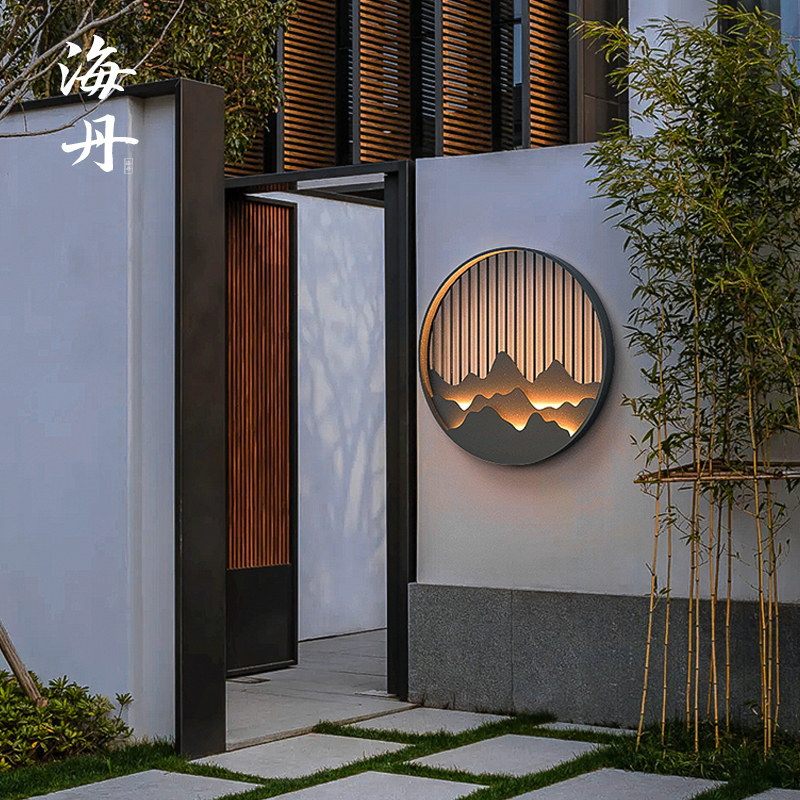 New Chinese style outdoor wall light solar garden light shadow wall entrance hallway landscape light waterproof villa exterior wall light