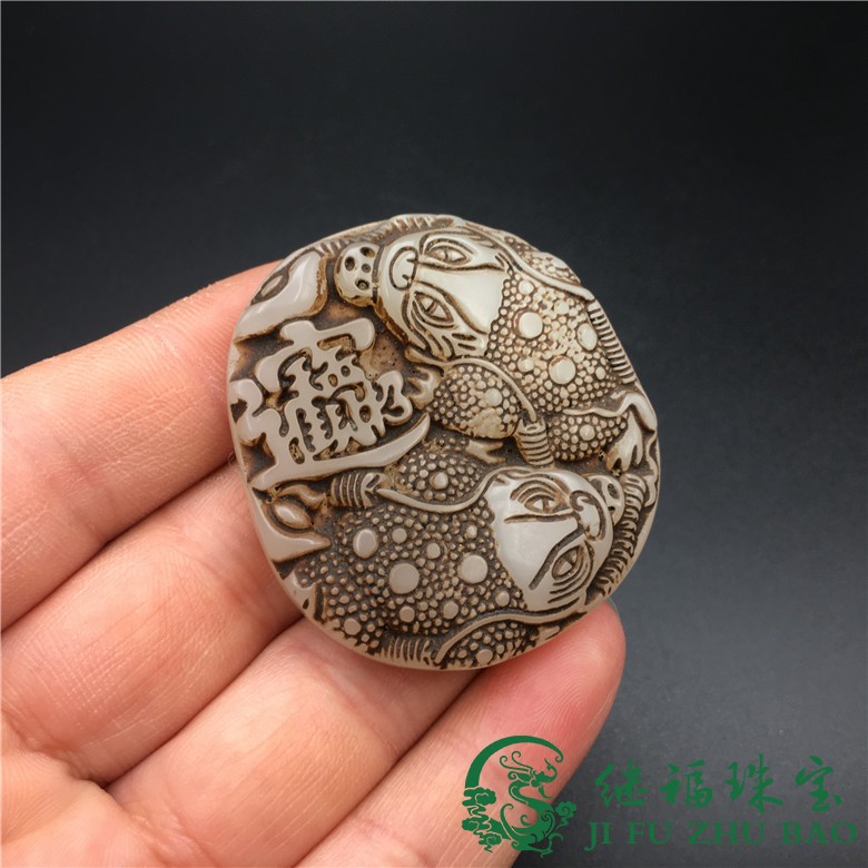Antique miscellaneous Old jade White jade Nafu Lucky Golden Toad pendant Antique jade Lucky treasure Jade Peiyu pendant