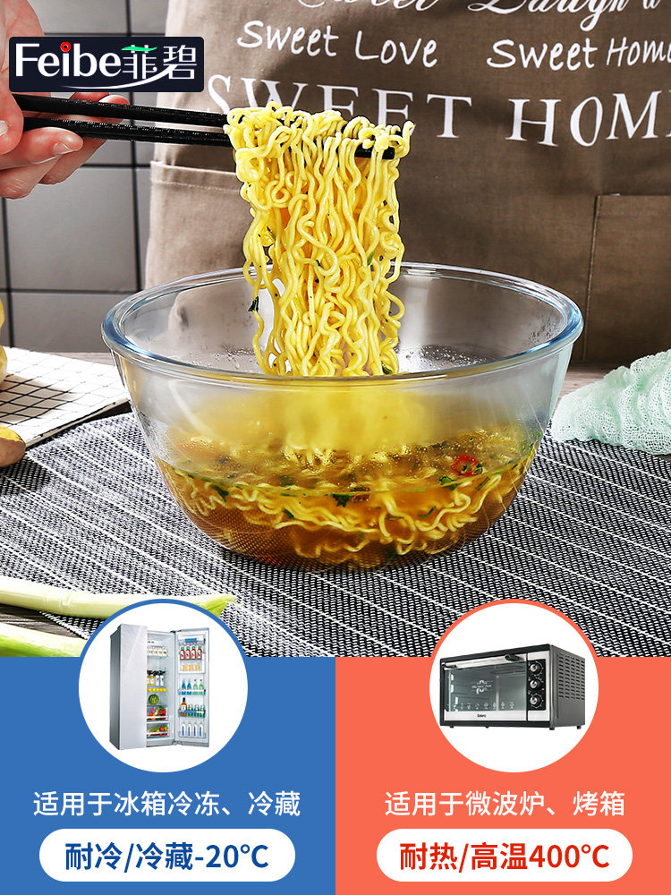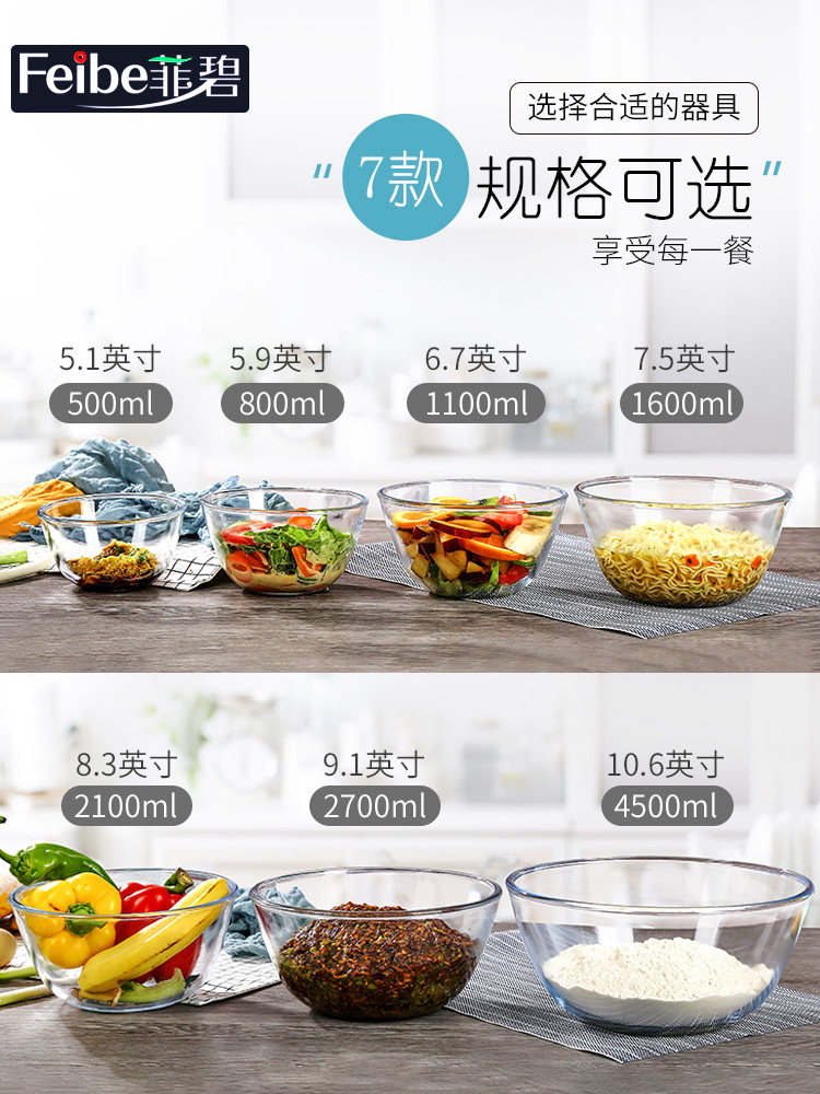 Transparent glass bowl salad bowl large microwave oven baking special heat-resistant home beating eggs and basin