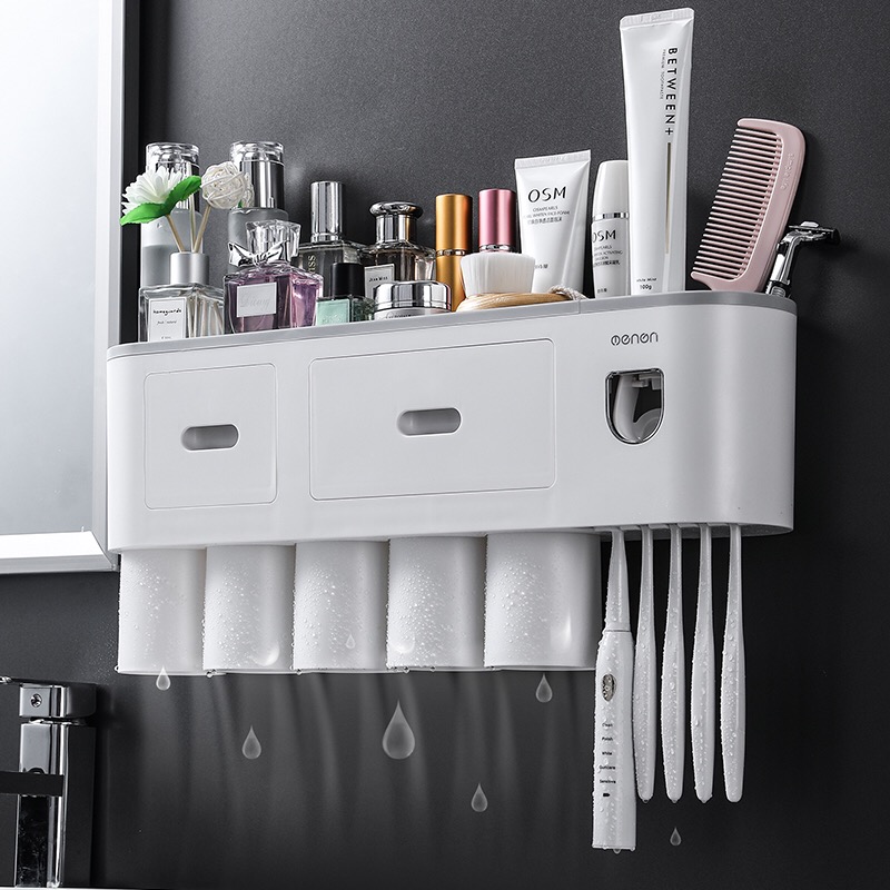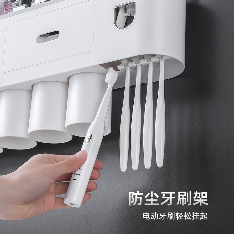 Toothbrush shelf no-punch mouthwash cup net red brush cup hanging wall type bathroom wall mounted storage rack set