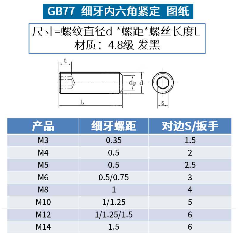 4 8 Class fine tooth tight fixing screw inner hexagon flat end top wire stop screw GB77m8m10m12m16m20 6L