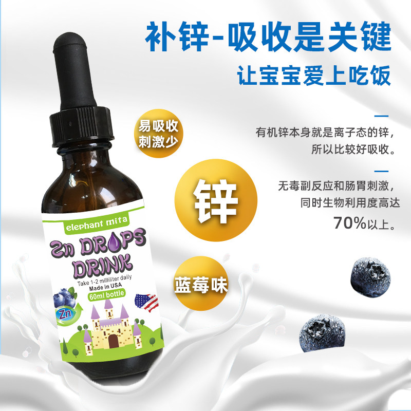 Baby Elephant Mita U.S. Imported Nutritional Products Organic Zinc Drops 60ml Baby Zinc Supplement