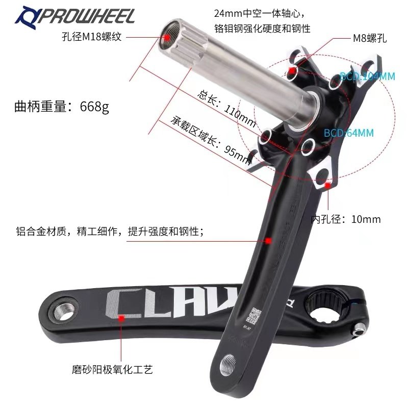 Prowheel Vast Alliance Mountain Bike Hollow integrated double disc crank retrofit 32 36 34 38T positive and negative teeth Single disc-Taobao