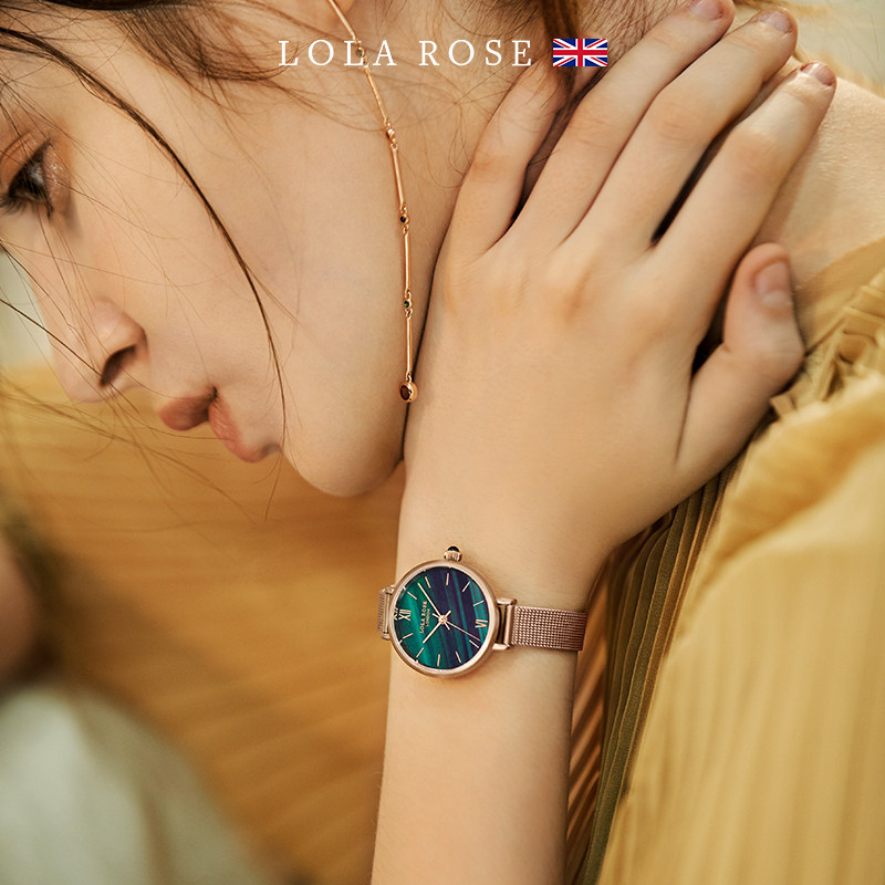Lola Rose Disc Small Green Watch Steel Strap Watch Schoolgirl ins Niche Women's Watch Waterproof