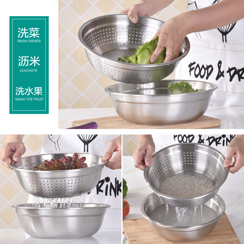 304 stainless steel leaky basin household with naomi sieve thickness round fruit basket asphalt set