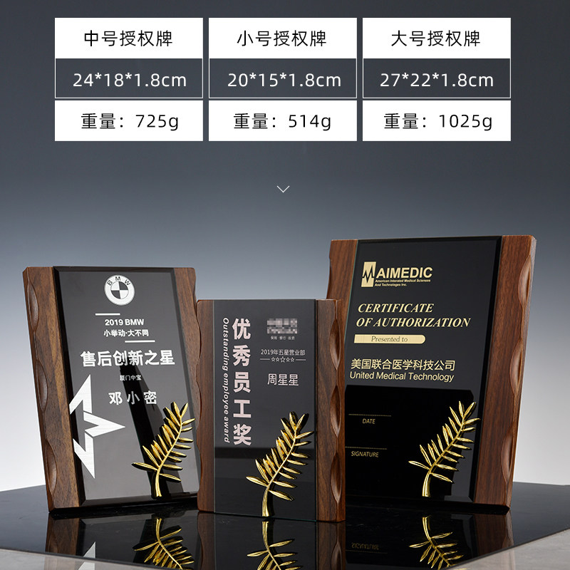 Metal ear of wheat letter of appointment Certificate of honor Glass black walnut Wooden trophy medal Join authorization card Custom made