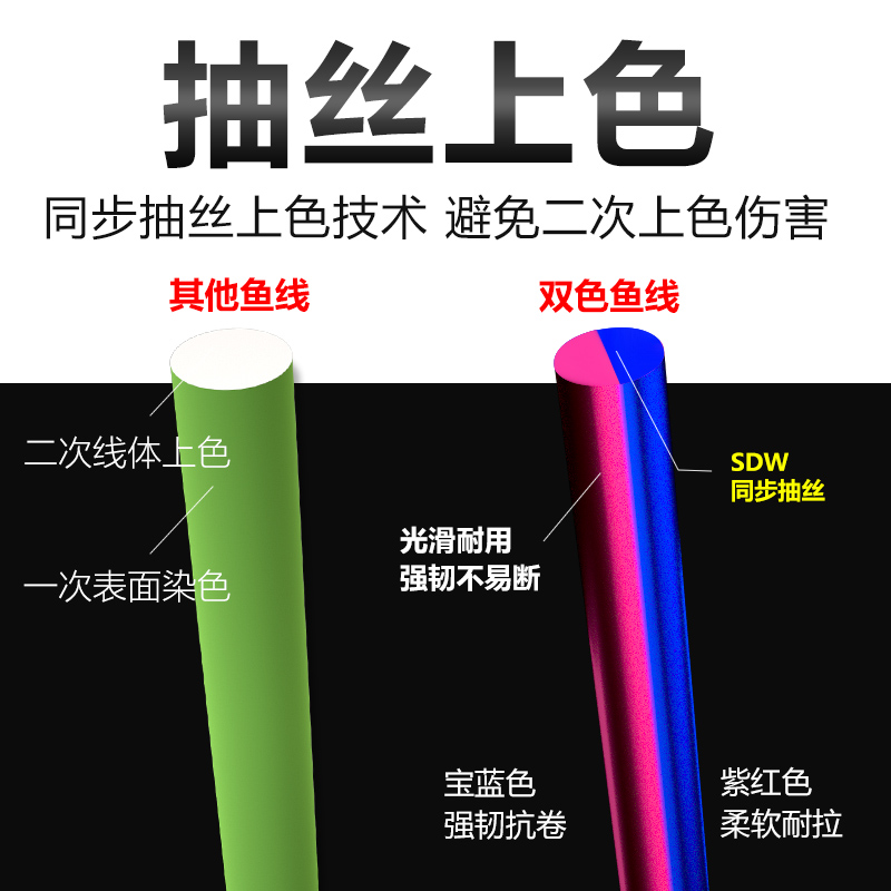 Fish multi-art nylon fish line 500 m Yin and Yang Two-color line imported ultra-strong pull sub-line main line Taiwan fishing line