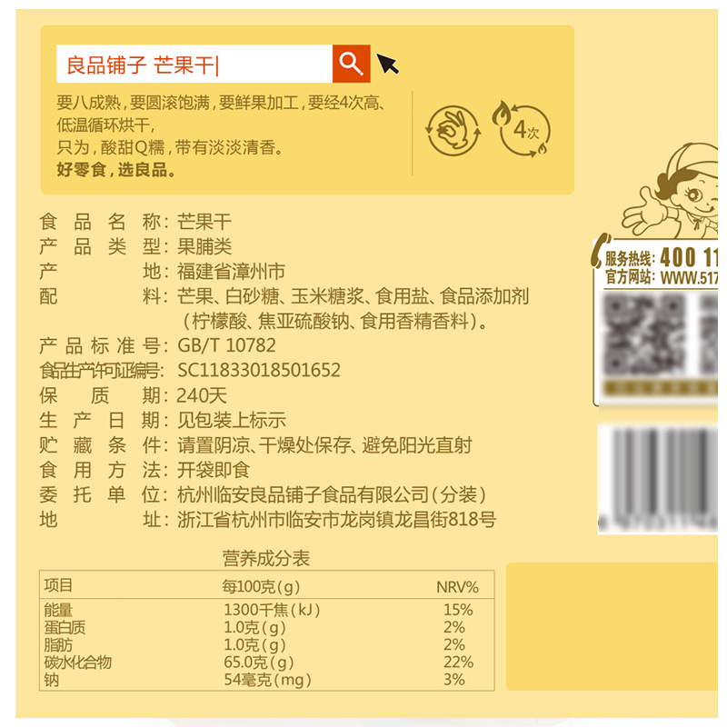 Dried mango, sugar, food additives (sodium metabisulfite, citric acid), food flavors and fragrances