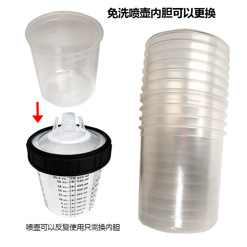 Disposable spray can spray paint pot disposable gun pot universal with scale two-piece replacement liner 600ml plastic container