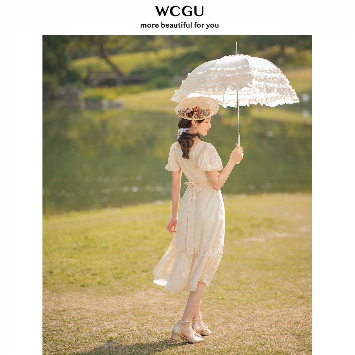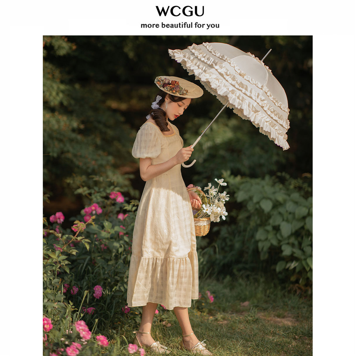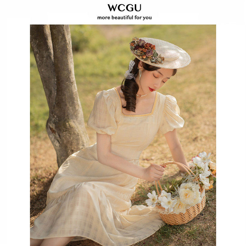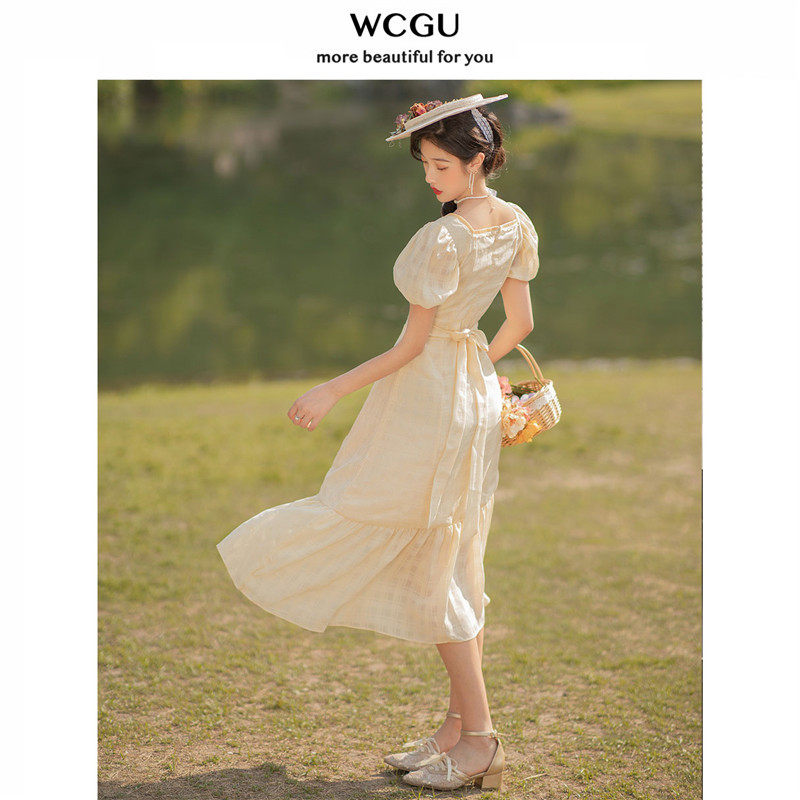 Tanabata date dress Women's summer French retro square collar court style long dress First love sweet fairy skirt Autumn